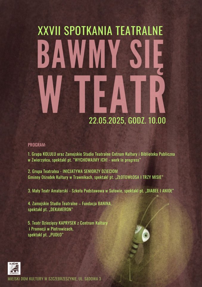 Już w najbliższy czwartek zapraszamy na XXVII Spotkania Teatralne - BAWMY SIĘ W TEATR. Wstęp wolny!!!
